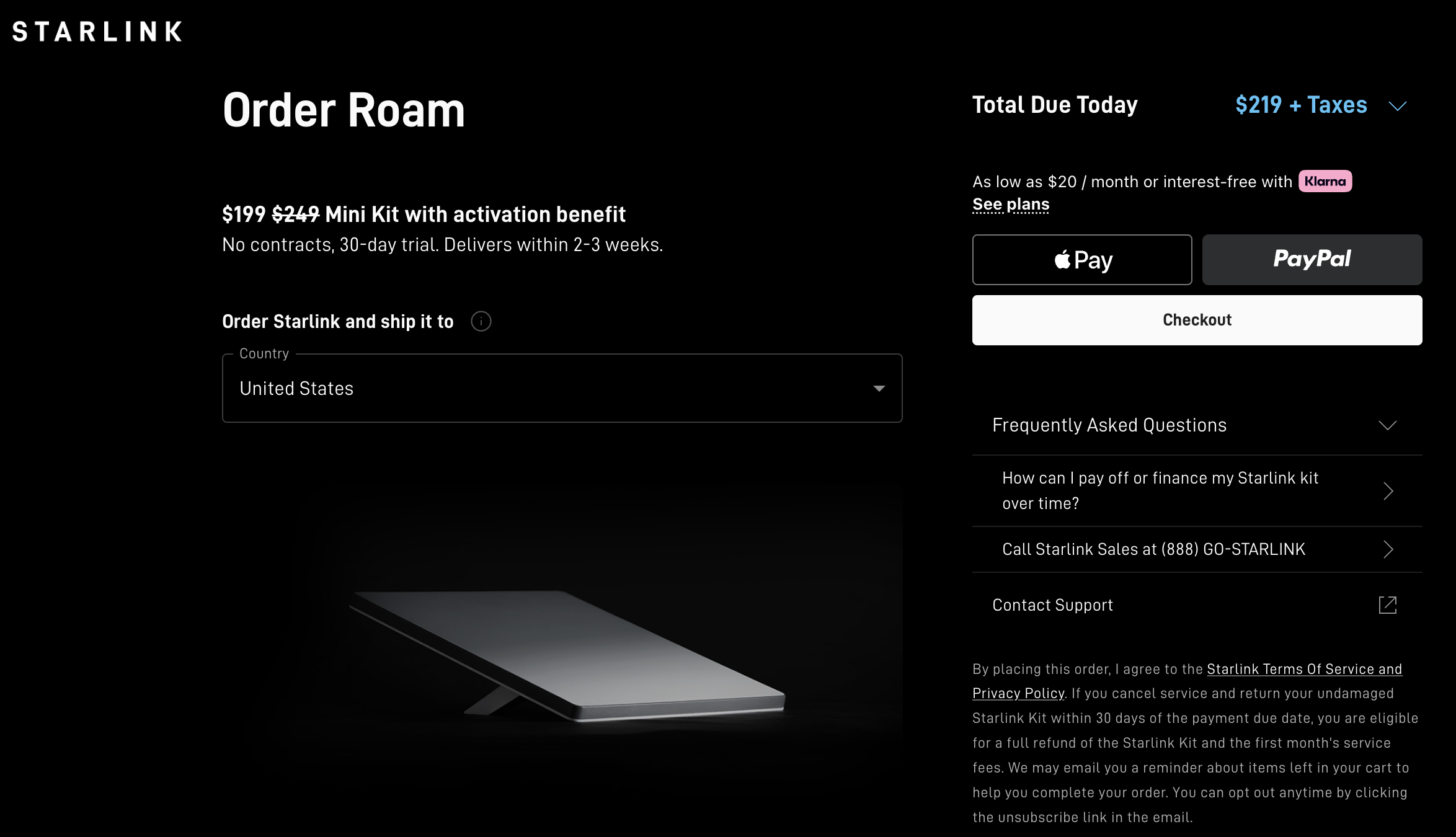 Starlink $199 mini for RVers, cabins, vacation, work on the road, poor service areas
